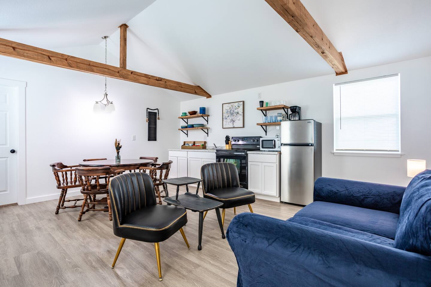 Looking for an affordable place to stay close to the busyness of Waco but still quiet and relaxing? Take it easy at this unique and tranquil getaway just 20min from downtown! Texas Trio hosts (3) 2-bedroom homes for you to rent on the backside of The Bridge Christian Church in Crawford Texas. Each home has room for 4 guests. Rent 1 for your family or come with a group and rent all 3!