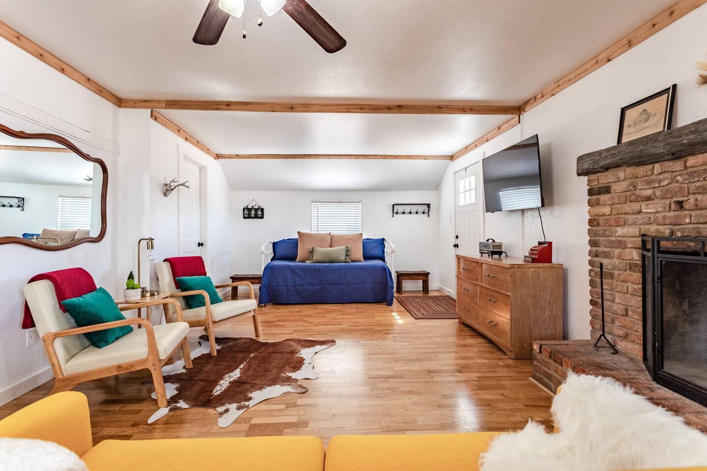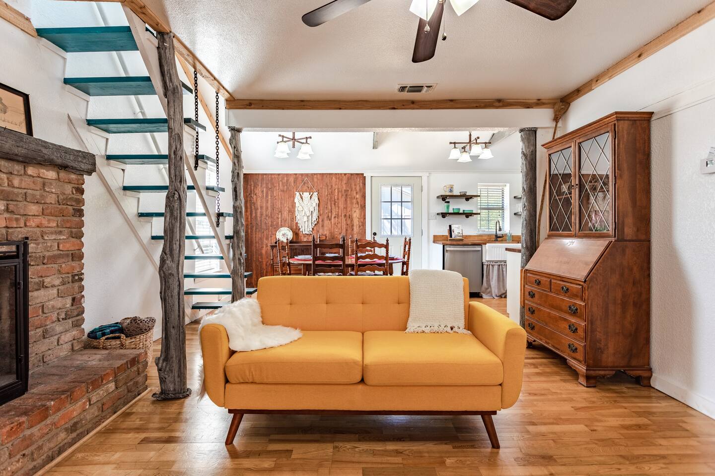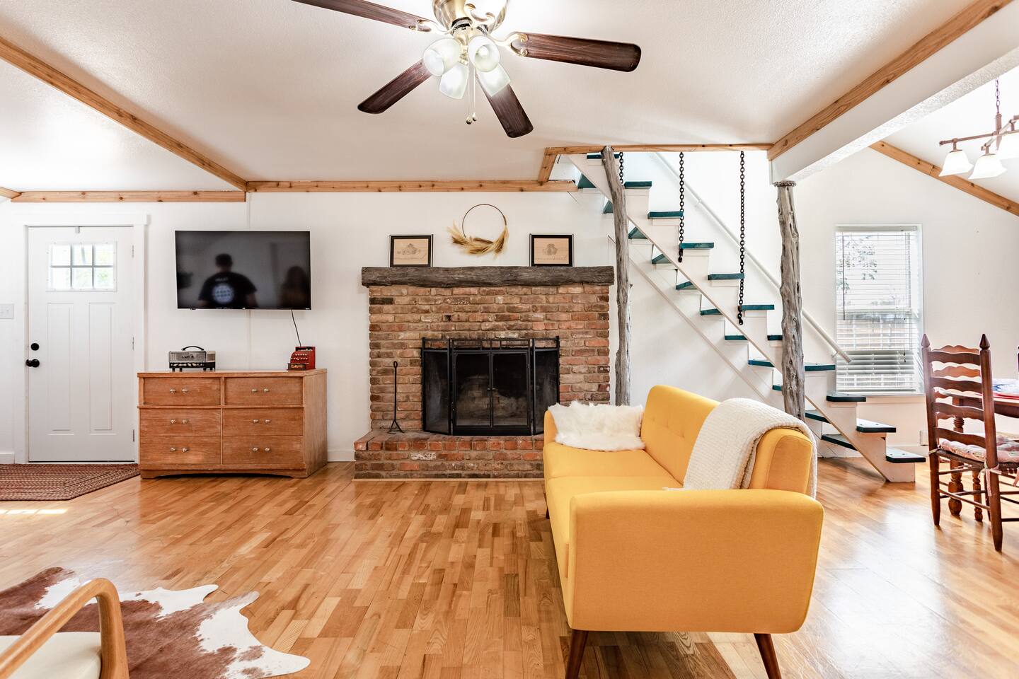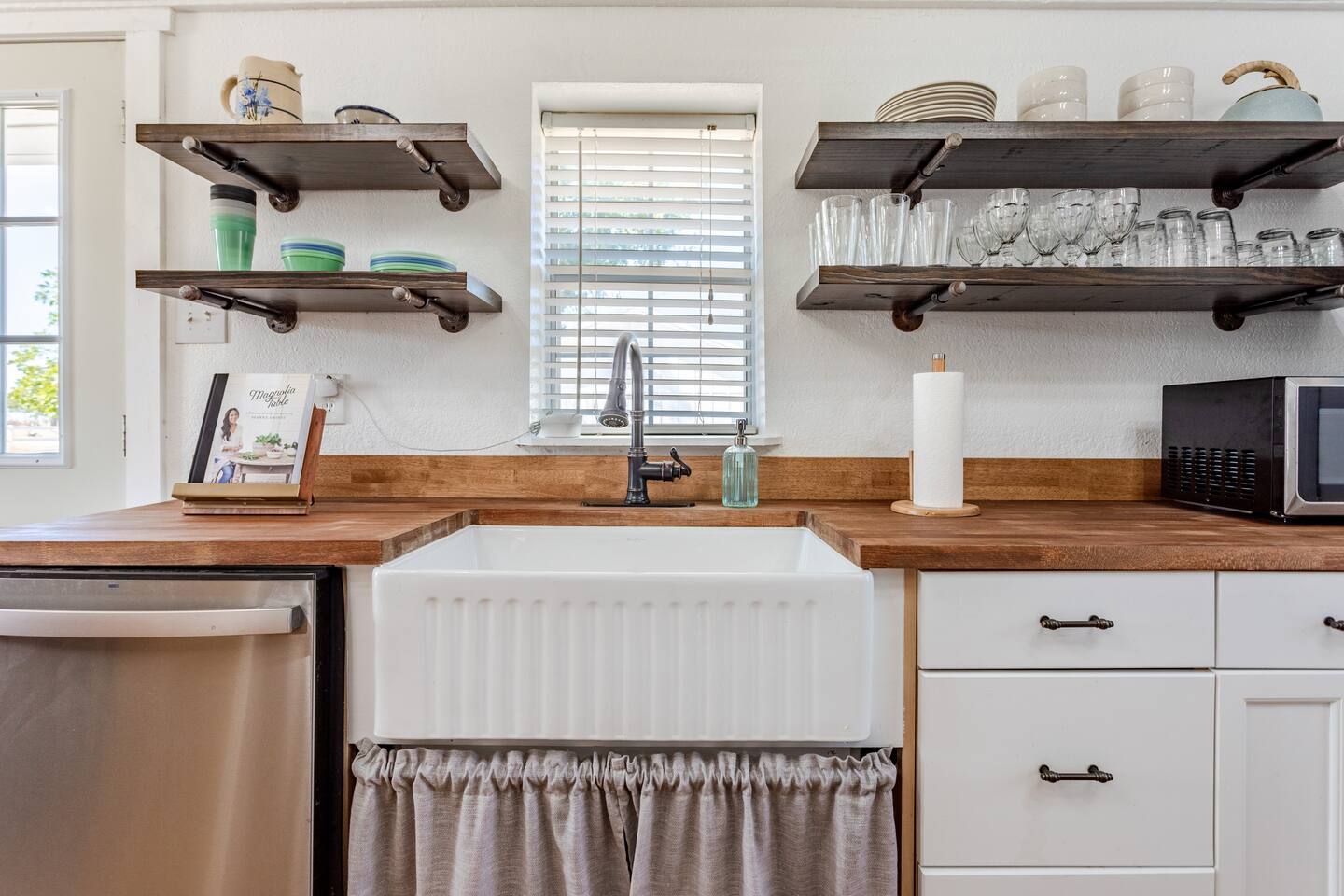 This Farmhouse is located 15 minutes from Waco/Magnolia/Baylor and provides a peaceful getaway for you while you are visiting Waco. Enjoy some time sitting by the fireplace with your family or sitting out on the porch and watching the goats graze! The space is quaint with all the amenities you need for your stay and is sure to be refreshing. It even places you as a temporary neighbor to the Gaines' family, and while you probably won't see them, at least you'll know you have good neighbors!