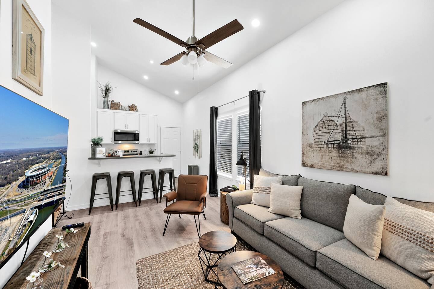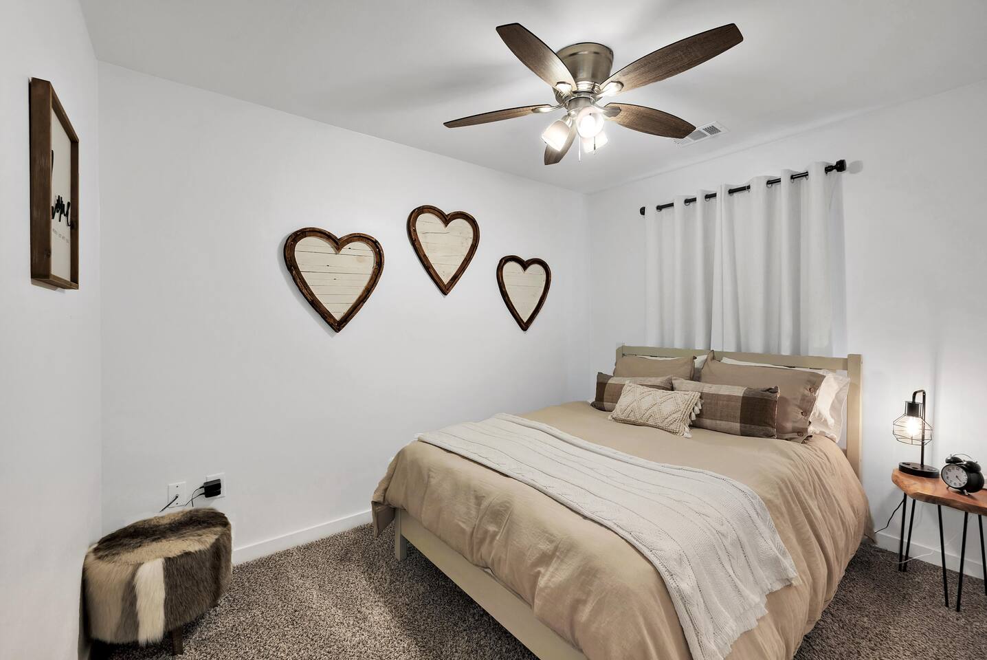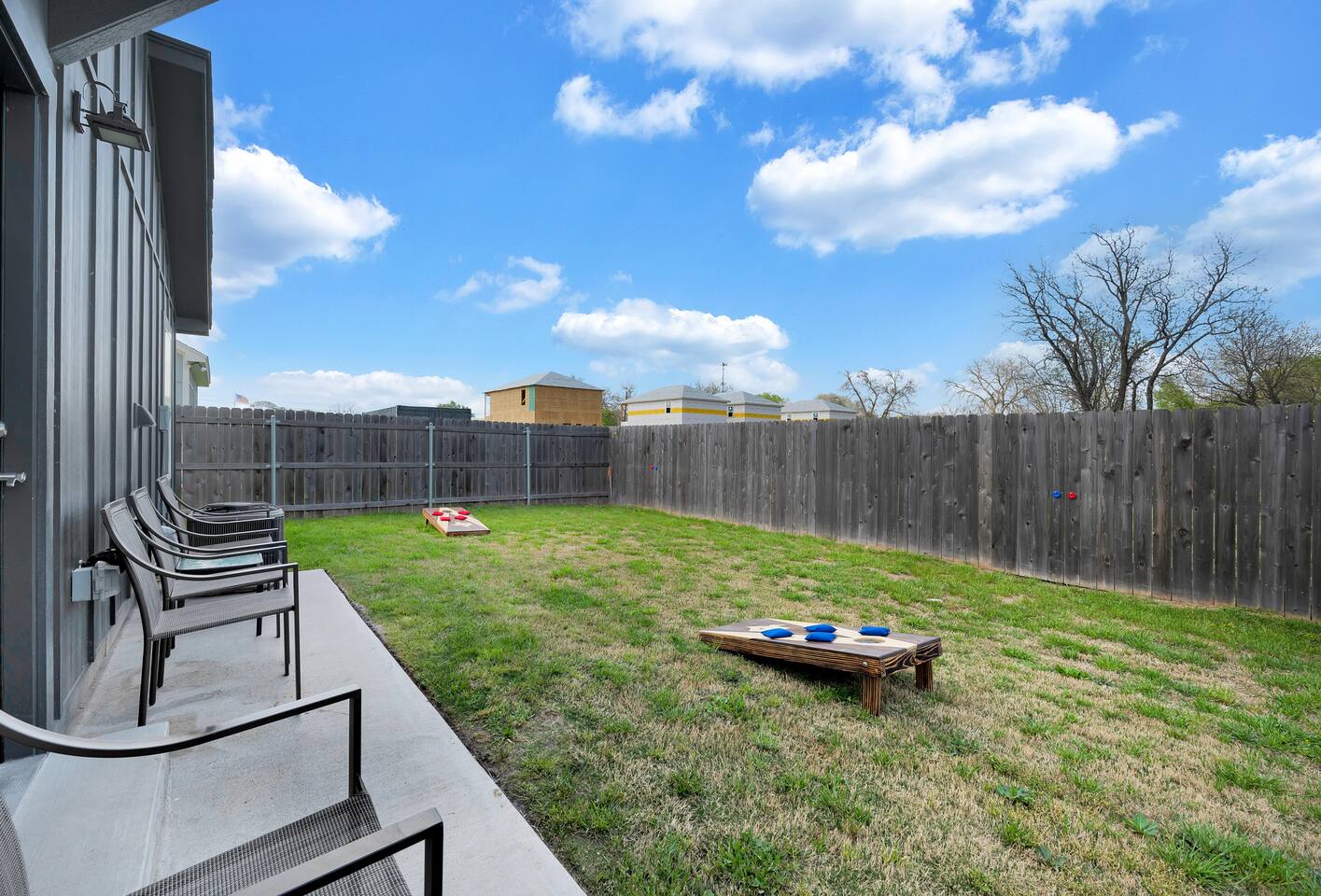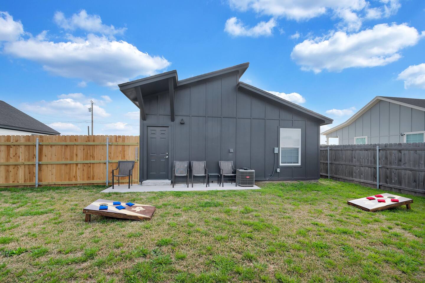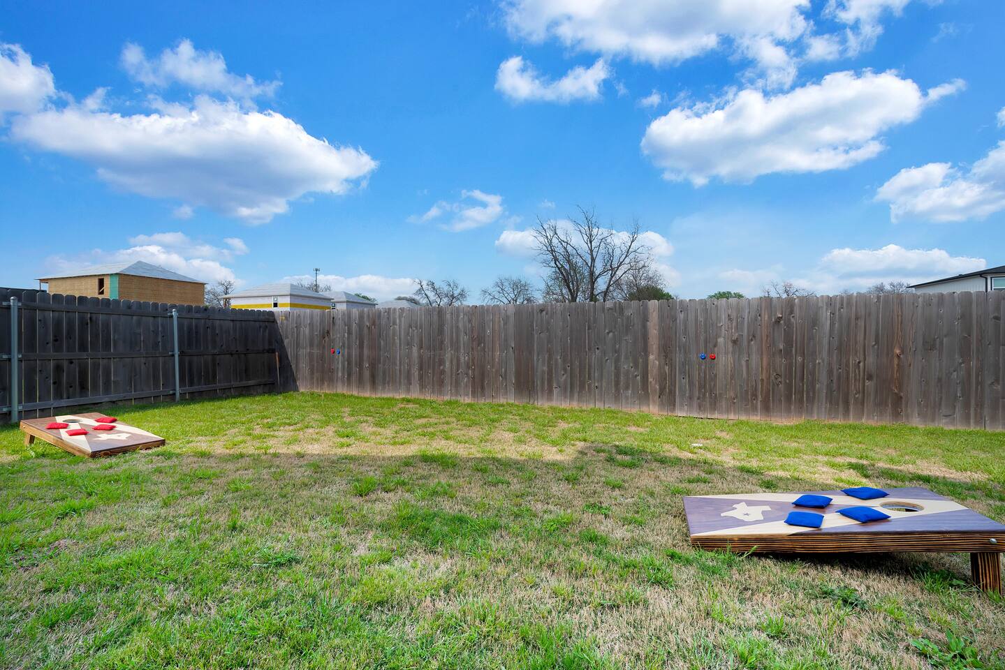 Our cozy new home offers 2 bedrooms with 2 comfortable queen size beds. An additional twin size air mattress & pack and play are available upon request. Kitchen setting is open to the living room creating an easy space to cook, entertain & interact with family & friends. Free parking on the property offers ease & convenience. The backyard is fully fenced. We have chairs, table, washer pits and lighted Cornhole boards for your pleasure.