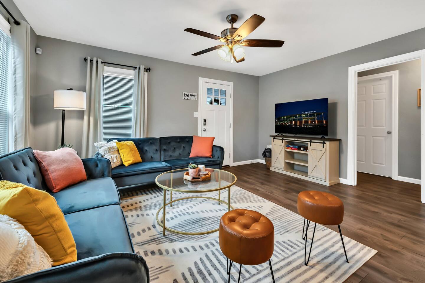 We are a licensed short-term rental with the city of Waco and have been inspected for both safety and operation standards (STR001323-12-2022). The home is equipped with a full security system to put you at ease while traveling. There are 3 outdoor security cameras covering the driveway, front yard, and front door. There is also a motion sensor in the living room that will only be activated if you choose to arm the home while away.